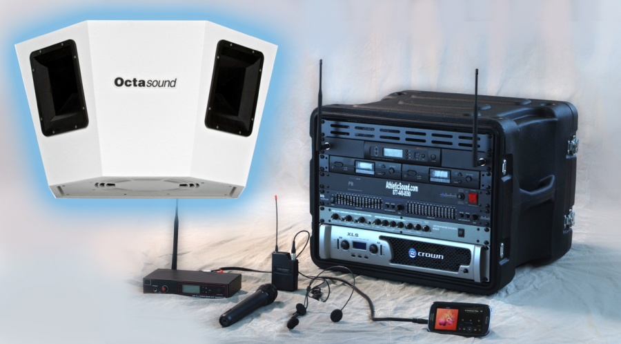 This sound system is the little brother to the AS-1GOS and is designed for smaller high school gymnasiums and arenas. The speaker has a 12” low frequency driver, provides a 180 degree sound pattern and will cover up to 20,000 square feet. Basketballs, hockey pucks, other projectiles – no problem!